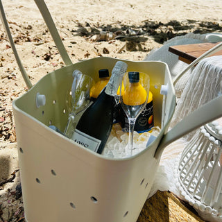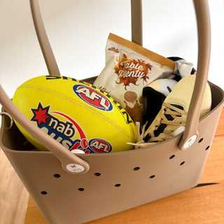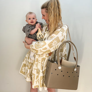Meet the Mini Tribe Bag in Sand Dune, your new beach bestie! This warm, neutral tone is inspired by sandy shores and perfect for little hands (and grown-up ones too). It’s sized just right for kids but stylish enough for you, making it the perfect mini and me beach bag to match with Maxi Tribe Bag in Sand Dune for unforgettable beach days. Want to go hands-free? Just pop on a strap through the side holes, and you’re ready to roll. Sand Dune is the ideal rubber beach bag for kids and adults who love an easy, stylish beach vibe.